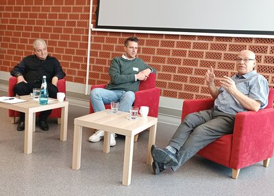 Im anschließenden Podiumsgespräch zwischen Mertes und Heinemann ging es um die Herausforderung der Demokratie durch völkisches Denken, Nationalismus und die gesellschaftliche Spaltung. Heinemann verglich den Volksempfänger im Nationalsozialismus mit den heutigen sozialen Netzwerken, die von autoritären Akteuren oder durch russische Infiltration genutzt werden, um Wahlen zu beeinflussen und Zwietracht zu säen. „Wir laufen Gefahr, aufgrund eines falschen Freiheitsverständnisses in die Falle zu tappen“, sagte er.