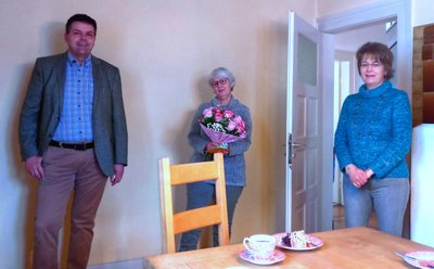 Mit einem recht nützlichen Kuvert, einem bunten Blumenstrauß sowie dem Coronabedingt nötigen Abstand wurde Frau Hahn jetzt am 12.01. in Lautzkirchen unter dem besonderen Dank von Pfr. Klein verabschiedet.