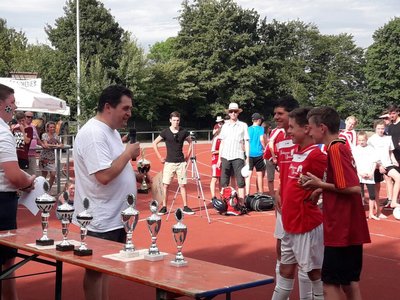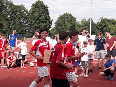 Ohne Gegentor absolvierte unsere Mannschaft beim Fußballturnier am Sonntag, 11. Juni in Herxheim Spiel um Spiel. Und so standen die Jungs - gemeinsam mit ihren Coach Stefan Rutz - schließlich verdient im Finale gegen Schifferstadt. Ergebnis: 2:0.