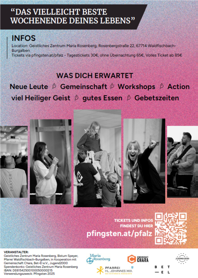 Tickets via pfingsten.at/pfalz - Tagesticket 30€, ohne Übernachtung 65€, Volles Ticket ab 85€