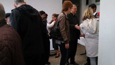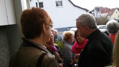 Nach 45 Jahren – seit der Weihe unserer Kirche - war wieder ein Bischof bei uns! Entsprechend groß war die Freude, auch als er beim anschließenden Stehempfang den Kontakt zu den Menschen suchte und für jeden ein freundliches Wort hatte.
