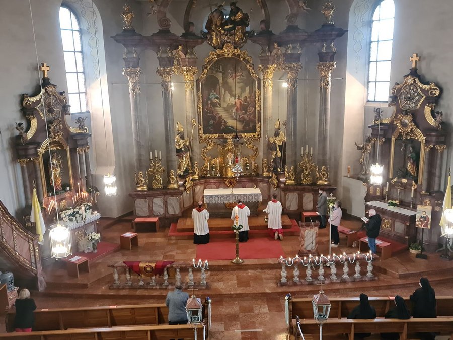 Neu in diesem Jahr war eine von Pfr. Müller und dem Sakristeiteam gestaltete Maiandacht am Abend des Pfingstsonntags mit dem Thema „Maria in 1000 Bildern“. Mit der Eucharistischen Anbetung am Ende der Andacht war dies ein sehr schöner feierlicher Abschluss des Pfingstsonntages.