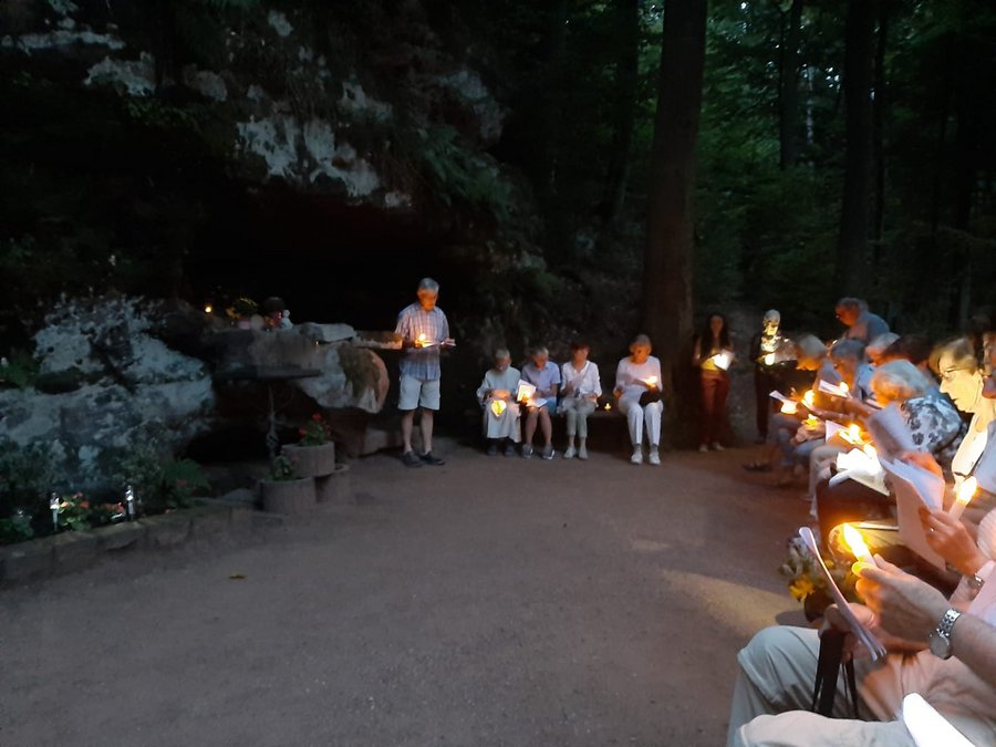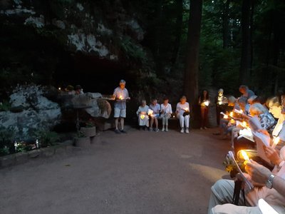 Lichterprozession mit Pfarrer A. Klein zur Mariengrotte in Oberwürzbach