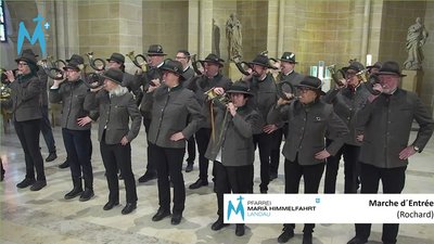 Das Netzwerk Naturhorn unter Leitung von Ralph Fischlhammer lässt Parforcehörner in Es von der Empore aus ertönen, die Jagdhornbläsergruppe Südliche Weinstraße mit ihrem Dirigenten Thorsten Braun spielt im Altarraum der Kirche auf. Clemens Kerner begleitet den Gottesdienst an der 100jährigen Steinermeyer-Orgel. Die Liturgie leitet Dekan Axel Brecht, der Pfarrer der Pfarrei Mariä Himmelfahrt Landau.