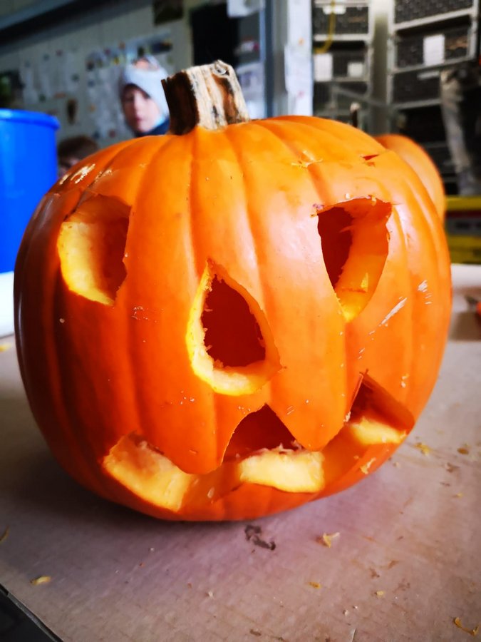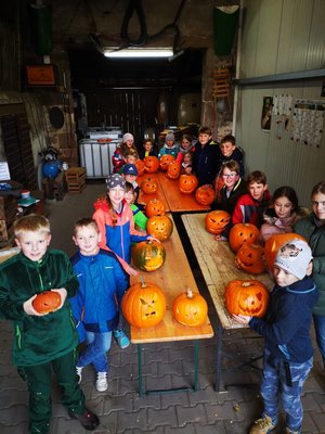 Die Suppe war schon vorgekocht, die Messdiener pünktlich, so dass Hr. Pfr. Müller keine Suppe mehr bekam, weil die Kids so flott waren mit Schnitzen. Das Wetter spielte mit und so konnte nach Fertigstellung der Kunstwerke noch das Gelände um Haus und Hof genutzt werden und es wurdenach Herzenslust herumgetobt. In Bildern festgehalten was unsere Messdiener für schöne Kürbisse geschnitzt haben. Es war ein schöner Messdiener-Samstag für und mit den Kids der Hl. Elisabeth.