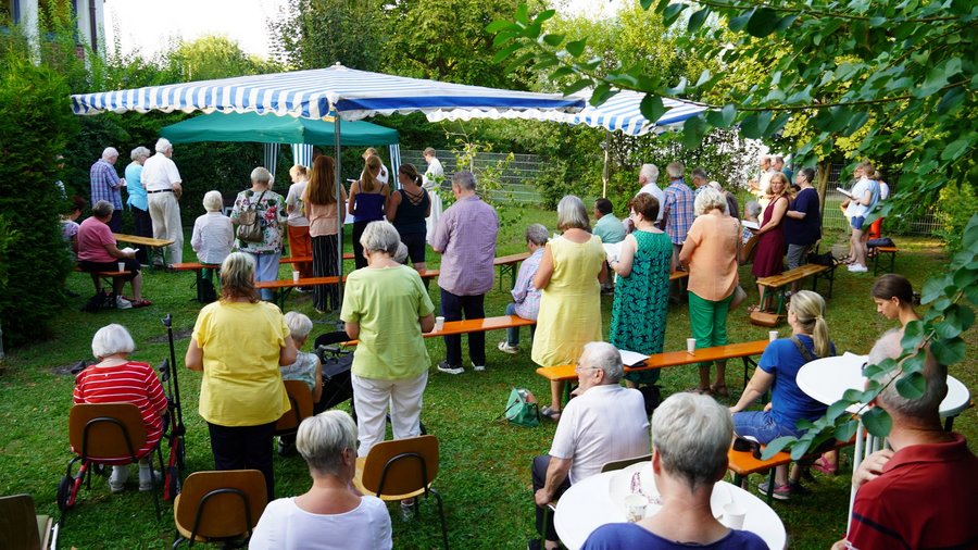 Der Vorabendgottesdienst in der Gemeinde Herz Jesu am Samstag, 24. August, erfuhr eine ganz besondere Gestaltung. Denn er fand als "Open-Air-Gottesdienst" auf der Wiese des Kindergartens Herz Jesu statt. Anlass war die Glockenweihe vor 60 Jahren im freistehenden 32 Meter hohen Kirchturm.