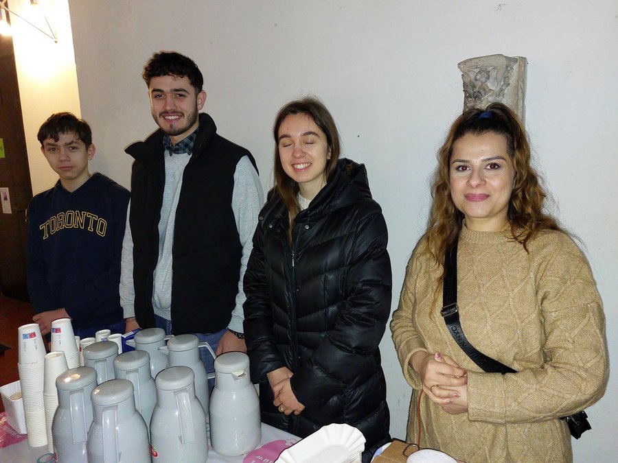 Nach dem 11-Uhr-Gottesdienst am 4. Februar 2024 in der Kirche St. Ludwig folgten zahlreiche Besucherinnen und Besuchern der Einladung der Messdienerinnen und Messdiener und blieben noch im Vorraum der Kirche und unter den Arkaden, um sich die Kartoffelsuppe schmecken zu lassen.