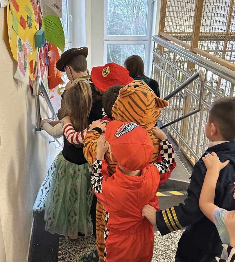 Schon am Morgen verwandelte sich unsere Kita in eine bunte Faschingswelt: Clowns, Bienen, Prinzessinnen, Dinosaurier, Piraten und viele weitere fantasievolle Kostüme zogen durch die Gruppenräume. Natürlich durfte auch die Polizei und Feuerwehr nicht fehlen, einsatzbereit fürs Feiern.
