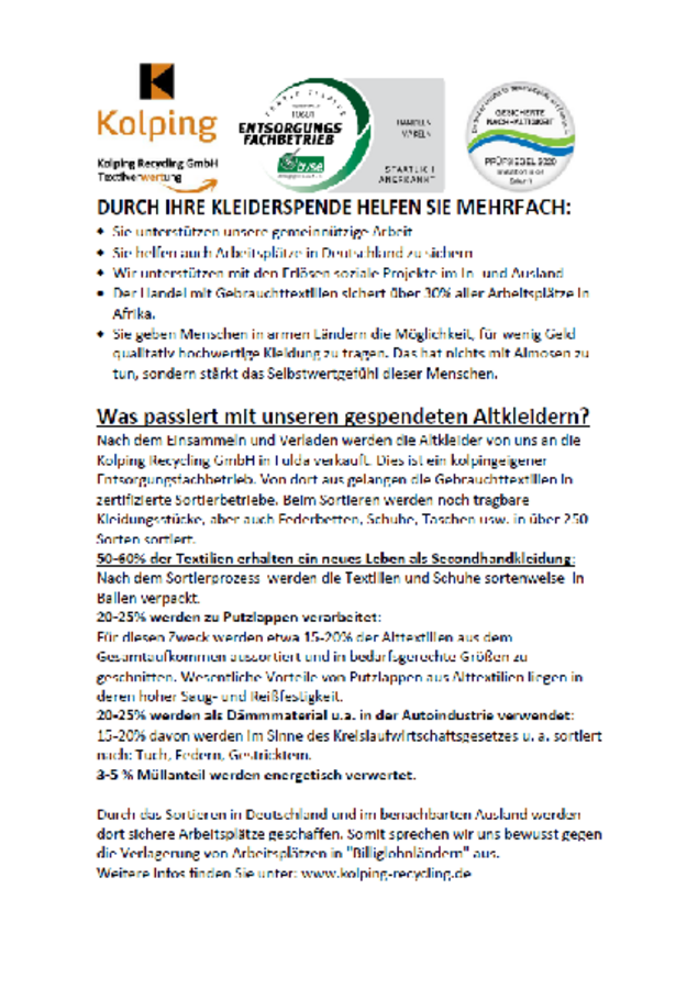 Kleider- u. Schuhspende der Kolpingsfamilie