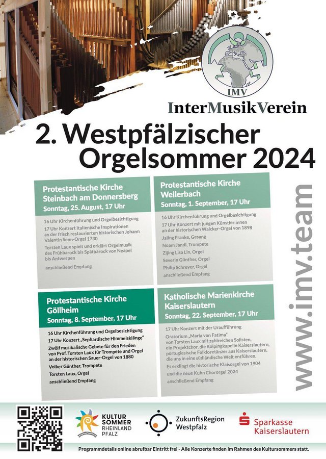 Im Rahmen des 2. Westpfälzischen Orgelsommers 2024 geben Herr Prof. Torsten Laux und Herr Volker Günther am Sonntag, dem 08. September 2024, 17:00 Uhr, in der Protestantischen Kirche Göllheim ein Konzert zum Thema "Sephardische Himmelsklänge".