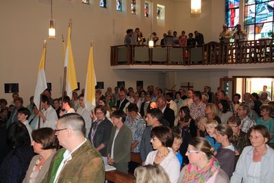 In der vom ganzen Seelsorgeteam, dem Liturgiekreis und einem Vorbereitungsteam gestalteten Feier wurde daran erinnert, wie es bis 1957 war, als die wenigen Katholiken im Dorf immer per Rad oder zu Fuß nach Lingenfeld zum Gottesdienst gehen mussten. „Es ist unser aller Haus hier, es ist auch Gottes Haus, und das nicht nur sonntags“, so hieß es. Von der Sehnsucht der Schwegenheimer nach einer eigenen Kirche berichtete auch der frühere Pfarrer Dr. Dr. Henry Patrao in einem Schlusswort. „Und Gott wollte dann für Euch ein Haus bauen und er fand bei Euch viele lebendige Steine für diesen Bau.“