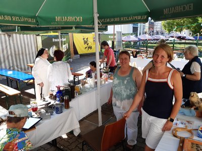 Ein herzliches Dankeschön für die Bereitstellung des Standplatzes geht an den Verein „Treff am Turm“ und natürlich an alle 14 Helferinnen und Helfer. Darunter waren Chefarzt Dr. Merz, Mitarbeiterinnen und Mitarbeiter - auch ehemalige - aus der Kinderklinik St. Annastift und Ehrenamtliche aus der Pfarrei Hll. Petrus und Paulus. Das Projekt hat allen viel Freude gemacht.
