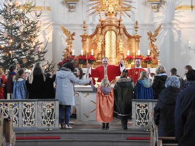 Wir bedanken und ganz herzlich für den feierlichen Gottesdienst in der Schlosskirche, vor allem auch beim Chor der Schlosskirche für die musikalische Gestaltung und den Messdienerinnen und Messdienern für ihren Dienst am Altar.