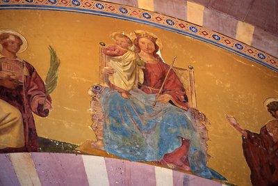 Die Rettung des Wandgemäldes in der Vorhalle und die Reinigung der Sockelzone